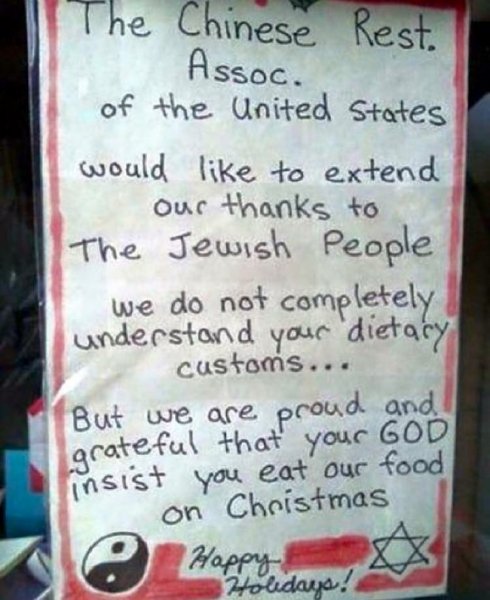 All I can think of is the movie "A Christmas Story" when you mention Chinese retaurants open on Christmas Day.