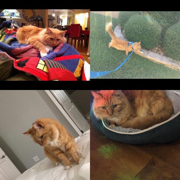 Sadly, Zeke is still missing. Zeke is an indoor cat that escaped from our home near the corner of Paisley Way and Edenville Path in the Village of St James. Zeke is a male cat with fluffy orange fur and four white-haired paws with a small orange dot on one of his front paws. Zeke also has white hair on his chest and his tail is large and fluffy. We think Zeke has been sighted twice this week in the Juniper Villas, Gladiolas Ct area off St Charles Way. So we are focusing our current efforts to locate Zeke in this area.