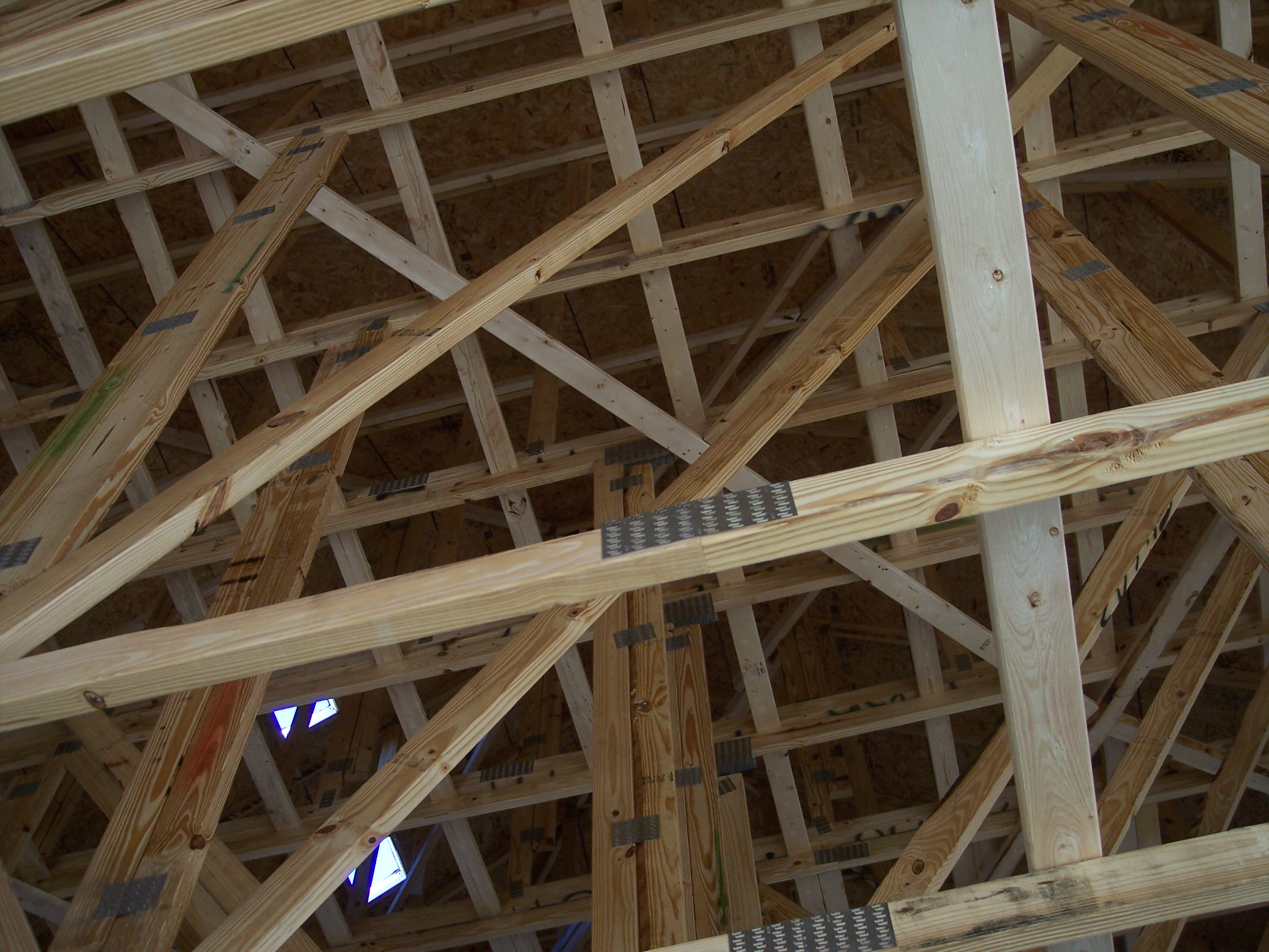 My greater worry would be of a direct lightning strike. I remember reading somewhere that the homes built in the recent five years have had upgraded wind protection but I can't find it. You might talk to warranty. We have pictures of our interior bracing when it was being built four years ago. Here they are.