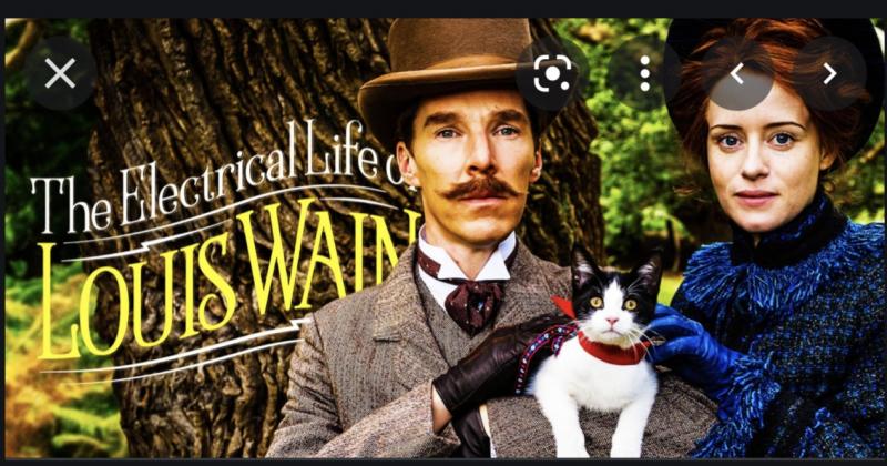 If you are a cat fancier, you might enjoy this new movie on Amazon Prime, “The Electrical Life of Louis Wain,” starring Benedict Cumberbatch and Claire Foy. Wain was an Illustrator for the London Illustrated News who in the 1890s adopted a wet orphaned kitten, then began drawing it. His drawings and paintings of playful, silly, graceful, beautiful cats took England by storm and started the craze for cats as pets. Before that, cats weren’t pets for petting, but were work animals used to catch and kill mice and rats. So if you have a cat, you should probably watch this and say thank you to Mr. Wain. Through his eye and hand, he has given people billions of hours of pleasure. (Or perhaps your cat should watch and gain a proper sense of gratitude to the man who led to your cat enjoying a long, warm, safe life of ease and luxury, cared for by eager slaves and preened or fed on command.)