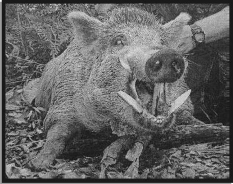 My experience with wild hogs has been mainly eating them while in hunting camp. A close friend and hunting buddy from my college days is an acknowledged expert regarding Florida wild hogs. He manufactures special hunting ammunition specifically for killing these dangerous animals. He has personally killed many dozens of them, usually when they are charging him with the intent to harm him. Generally, they will flee in the presence of humans, but you can't count on this. The older and larger males have very dangerous tusks. Don't seek out a confrontation with wild hogs. I'm including a couple of photos from the ammunition web site. My buddy James C. Gates is in one of the photos. |