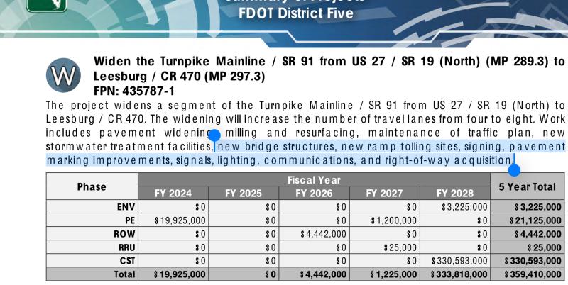 New bridge structures, new ramp tolling sites (e.g. interchanges), and right-of-way acquisition are identified in the planning. Last edited by Altavia; 05-28-2024 at 02:33 PM. |
