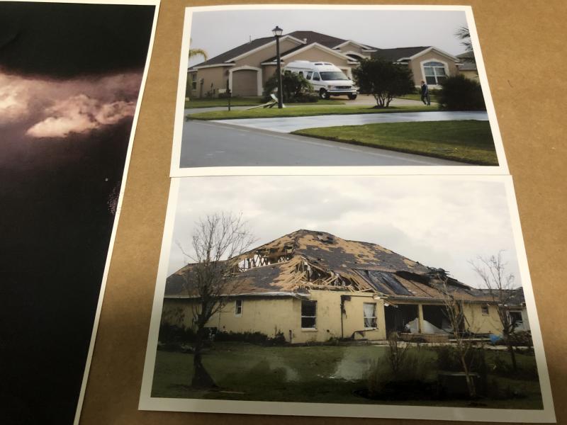 Here are photos of the 02/02/2007 tornado, this is on Golden Ridge which runs along the Cane Garden golf course. The photo with the burgundy colored car is of frame constructed patio villas, most of the others were blcok/stucco, the home with the car lying on it's side actually had a tree go through the roof and land inside of the home, the diameter of the truck was at least 20 inches. We were in the home with the small motorhome parked in front, minimal damage to ours but just 2 doors down massive destruction. The worst injury in our area was someone with a cut face or neck from broken glass.