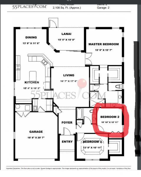 Second bathroom is very close to bedroom #2!
