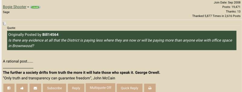 So if you want to compare apples to apples, then sure - let the Developers open up space in Brownwood to the district's administration offices, but NOT charge any rent at all. |