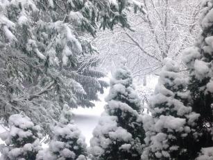 It's snowing. Started about 9 am. It's so pretty. But very wet and heavy. If we get 5 inches like the say power will be lost for us